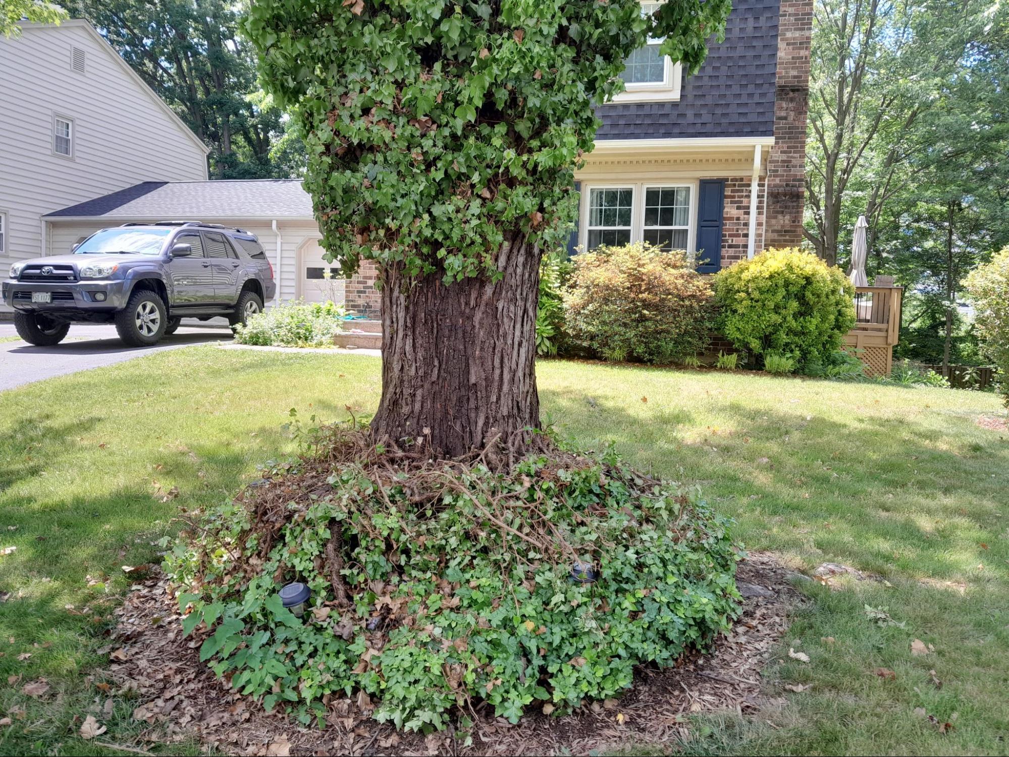 Note: To use herbicides, for example on the cut stumps of invasive non-native vines, paid applicators must have a certified pesticide applicator license. Tree rescues will be a new undertaking for most companies. They may need help to learn the proper techniques - Blue Ridge Prism is a great resource for that - and to recognize which vines are invasive and which should be spared because they are native. See this page for online learning resources in English and Spanish. Hands-on vine ID workshops are held periodically in some parks. We also have volunteers who can meet them on commercial properties to show them the ropes.